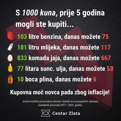 Pritom nije bitno ni drže li građani kune u obliku gotovine ili na bankovnim računima, kao ni to drže li svoju novčanu imovinu u nekim stranim valutama poput eura, dolara ili franka. Apsolutno svaka valuta pogođena je visokom inflacijom jer novac ubrzano gubi na vrijednosti, što će se nastaviti i u budućnosti.