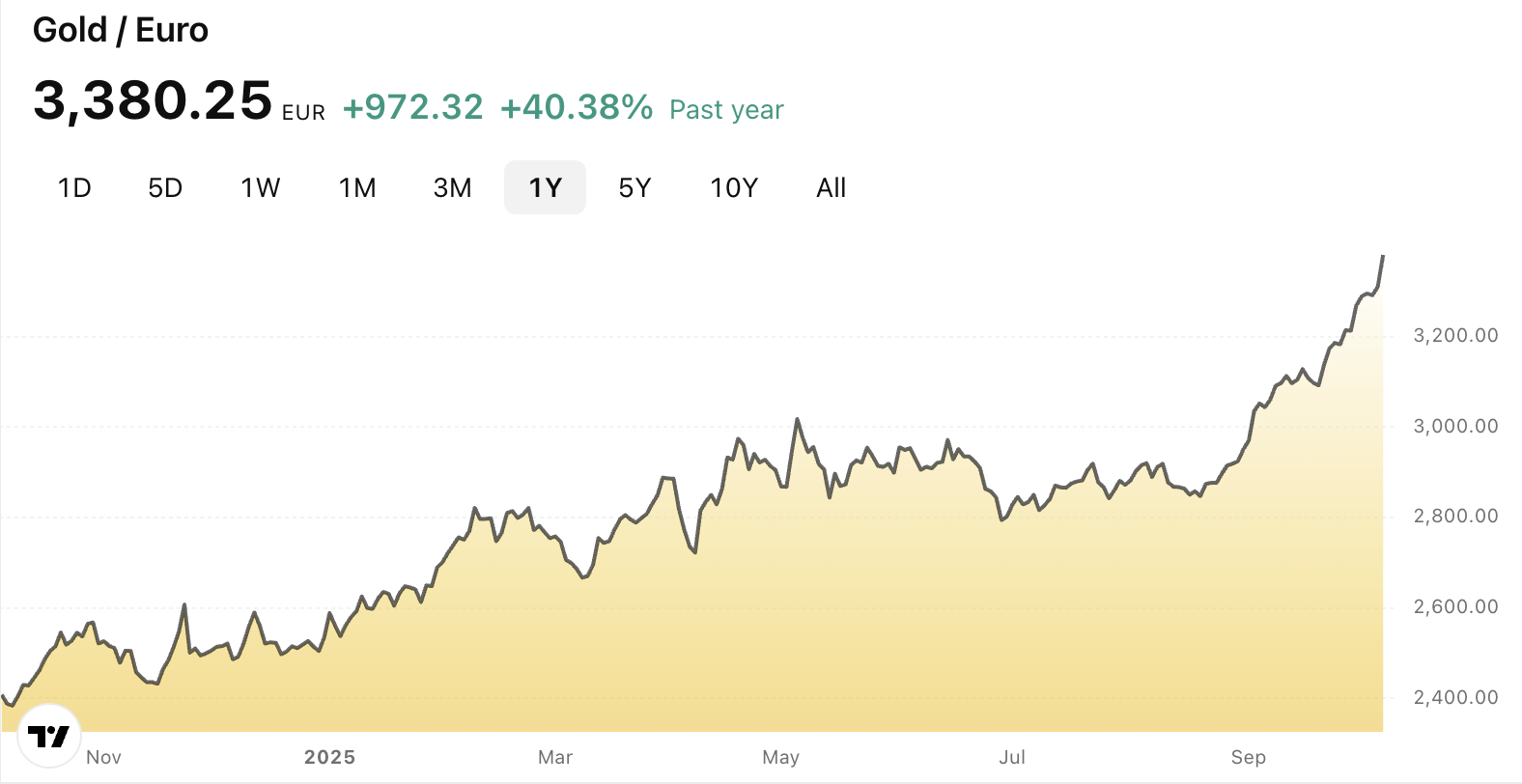 Cijena zlata ponovo probija rekorde i približava se nikad dosegnutoj psihološkoj granici od 4000 dolara po unci, što je oko 3420 eura po sadašnjem tečaju. Budući da se nalazimo u eurozoni i zlato kupujemo i prodajemo koristeći eure, rast cijene u toj valuti za nas je bitniji od rasta u dolarima.
