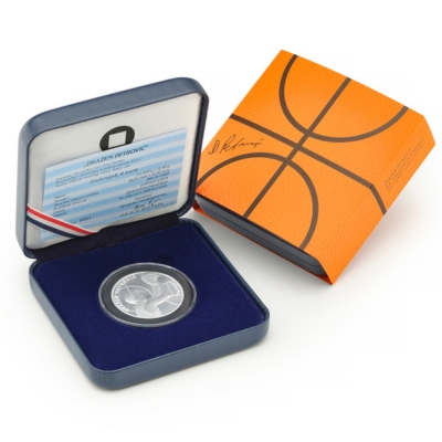 Obilježavajući 60. obljetnicu rođenja Dražena Petrovića Hrvatska narodna banka u suradnji s Hrvatskom kovnicom novca izdala je srebrnjak „Dražen Petrović“ mase jedne unce (31,103 grama). Srebrnjak ima nominalnu vrijednost 4 eura te je izrađen od srebra čistoće 999,9/1000. Srebrnjak je izdan u ograničenoj seriji od 4.000 primjeraka, a dolazi u kutiji s certifikatom koji potpisuje guverner Hrvatske narodne banke. Novo izdanje numizmatičkih kovanica krasi lik i djelo našeg košarkaškog Mozarta, i to u interpretaciji talentiranog hrvatskog kipara Nikole Vudraga. Na naličju kovanice autor nam približava motiv lopte u košu, najsnažnije slike Draženove uspješnosti na terenu, dok ga lice kovanice predstavlja u košarkaškoj akciji, koju je publika u Hrvatskoj i svijetu toliko voljela gledati.