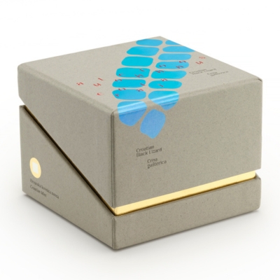 Kutije su ručno rađene te se u tome skriva njihova posebnost; svaki primjerak nesavršen je na svoj način. Osnovni element dizajna linije proizvoda “Autochtonous Croatia” je “logo” linije proizvoda u kojem su slovni znaci položeni u formi šahovnice. Baza kutije na kojoj leži kovanica izrađena je od crvenog papira posebne strukture koja predstavlja hrvatski kvadrat.